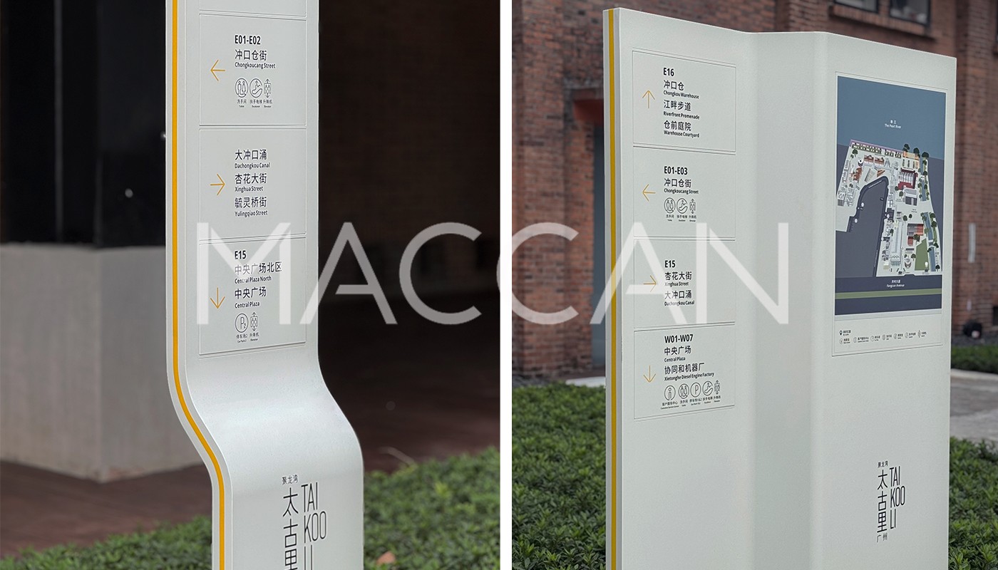 廣州聚龍灣太古里位于荔灣區(qū)白鵝潭核心地段,融合珠江濱水景觀與聚龍灣工業(yè)遺存元素,總建筑面積18萬平方米,首開區(qū)建筑面積約5萬平方米,引入國(guó)際一線品牌及首店業(yè)態(tài),并與白鵝潭萬象城協(xié)同加速商圈建設(shè)。麥肯標(biāo)識(shí)榮幸作為其導(dǎo)視服務(wù)商,打造了一套功能與美學(xué)共生的質(zhì)感標(biāo)識(shí)。